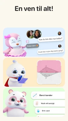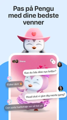 Men Friends er mere end blot individuelle følgesvende. Her kan du opdrage ledsagere sammen med venner, udveksle reaktioner og små gaver, og fejre jeres fælles milepæle i et digitalt rum, der vokser med jeres relationer. Tilpas Pengu, Mellow og Bao med unikke outfits, accessories, og design deres omgivelser med personlige baggrunde og temarum. Hold kontakten med Friends-widgets direkte fra din startskærm, og få et hurtigt indblik i dine ledsageres velbefindende. Appen er drevet af avanceret AI, der løbende lærer af dine interaktioner, tilpasser sig dine vaner og reagerer på din personlige udvikling. Hver ledsager husker jeres fælles fortid, hvilket skaber en dyb og meningsfuld forbindelse.