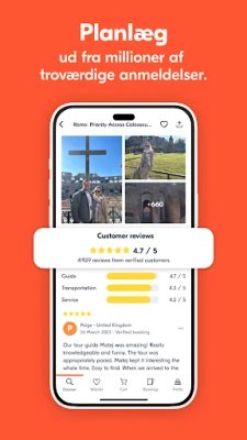 Optimal rejseplanlægning er nu inden for rækkevidde. GetYourGuide er designet til den moderne rejsende og tilbyder dig fuld kontrol over dine oplevelser. Forudbestil dine billetter for ro i sindet, eller book spontant, når inspirationen rammer. Modtag dine mobilbilletter øjeblikkeligt og hold styr på alt med lethed. Skab din personlige ønskeliste med drømmeaktiviteter, læs autentiske anmeldelser fra andre eventyrere, og nyd fleksibiliteten med problemfri afbestilling, hvis dine planer ændrer sig. GetYourGuide sikrer, at din rejseplan altid matcher dine ønsker.