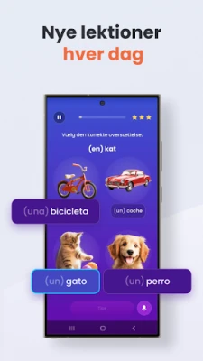 Glem de traditionelle, monotone sprogtimer. Mondly bryder med konventionelle metoder ved at kaste dig direkte ud i meningsfulde samtaler. Fra første øjeblik deltager du i dialoger, der gradvist opbygger din evne til at forstå og formulere dig. Appen forstærker dette med dynamiske øvelser i læsning, lytning, skrivning og tale, alt sammen suppleret af et interaktivt opslagsværk og en intelligent verbumsbøjning. Med den nyeste talegodkendelsesteknologi føles det, som om du har en personlig sprogcoach lige ved hånden, der finpudser din udtale med præcis og øjeblikkelig feedback.