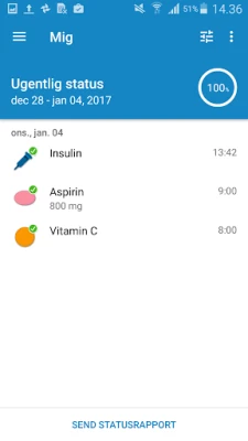 Slip bekymringerne for glemte doser med Medisafes pålidelige påmindelser, der aktiveres selv når din enhed er i dvale. Du kan personalisere din oplevelse ved at vælge en påmindelseslyd, der passer perfekt ind i din dag. Appen giver dig et klart overblik over dagens medicinplan, så du nemt kan markere hver dosis som taget, efterhånden som du kommer igennem dem. Skulle en dosis blive glemt, kan Medisafe, hvis du ønsker det, diskret underrette en betroet "Med-Ven" (familiemedlem eller plejer), så de kan minde dig om det.