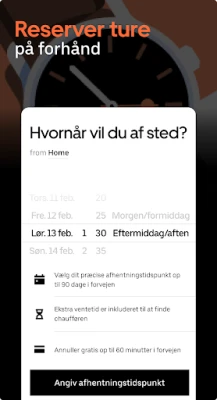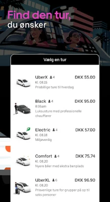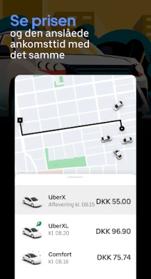 Din tryghed og fulde overblik er vores topprioritet. Med Uber får du altid et tydeligt prisestimat, inden du bekræfter din tur, så du præcis ved, hvad du kan forvente. Vi er dedikerede til at gøre hver eneste tur så sikker som muligt, understøttet af vores dør-til-dør-sikkerhedsstandarder, løbende opdaterede retningslinjer og innovative sikkerhedsfunktioner. Du kan desuden nemt dele din turstatus med venner og familie for ekstra ro i sindet, og i sjældne nødsituationer giver appen dig direkte adgang til lokale alarmmyndigheder med dine turdata. Efter hver tur har du mulighed for at bedømme din chauffør og give drikkepenge direkte i appen, hvilket sikrer en konstant høj standard.